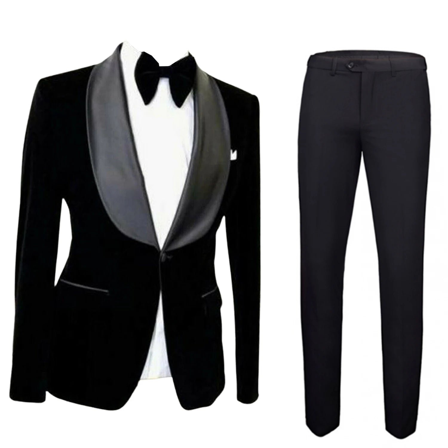 Men’s Black Velvet Jacket & Black Pants Suit Shawl Lapel One Button Wedding Prom Speech Christmas Party Prom Casual Suits
